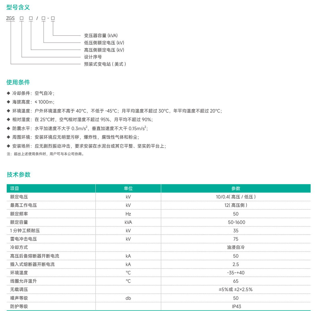 ZGS系列预装式箱式变电站(俗称美式箱变),其结构为“品”字型结构,变电器与高、低压设备相互紧密连为一体,其中,变压器三面外露空气中,散热条件好,且能与高低压设备壳体分离,便于检修。